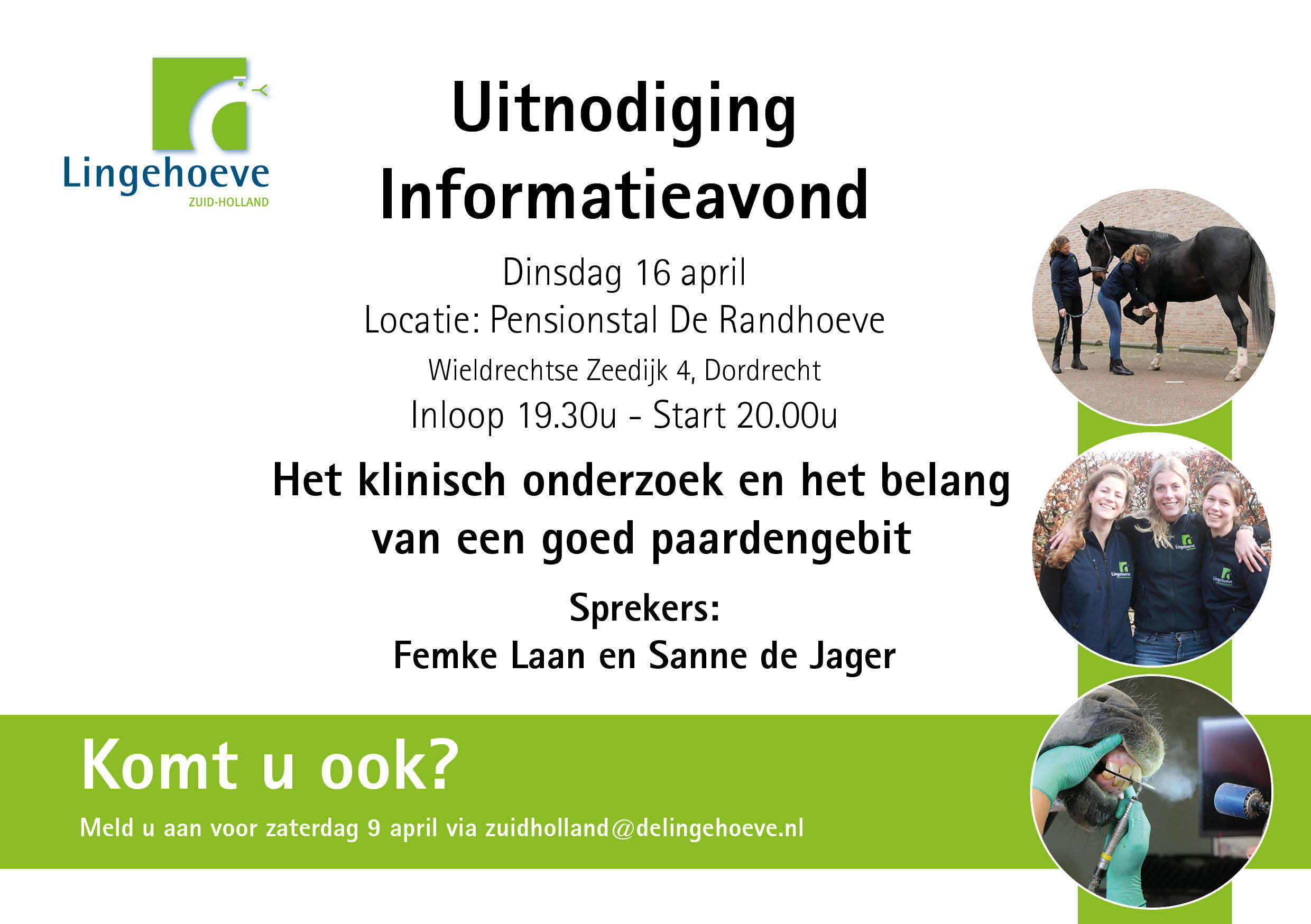 Femke Laan en Sanne de jager van Lingehoeve Zuid-Holland zullen deze onderwerpen met jullie bespreken. Daarnaast zal Charlotte van pensionstal De Randhoeve een rondleiding verzorgen.